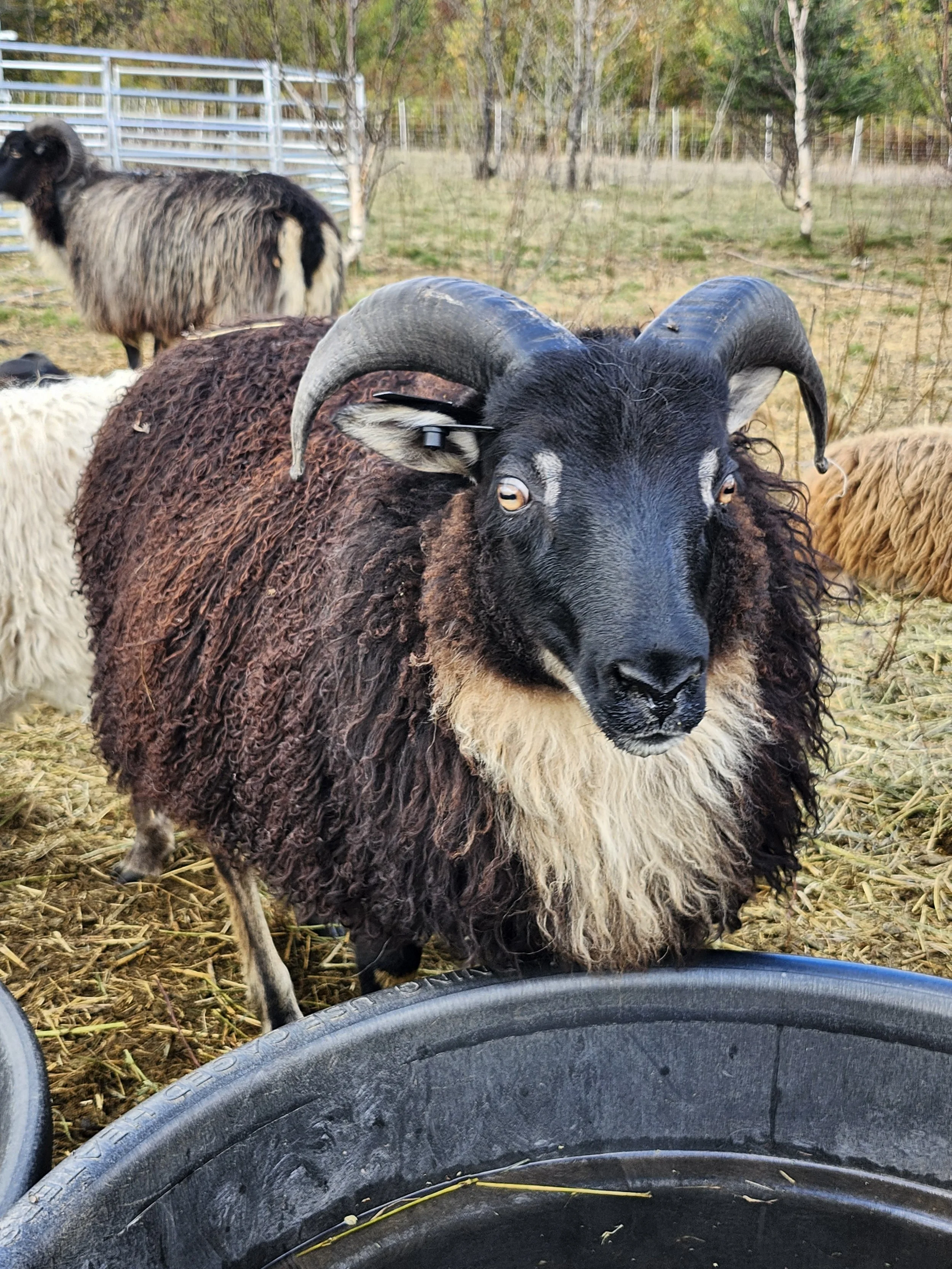 2024 Triplet Ram bred by Echo Hill Homestead. SGGM with his second pattern being Black Mouflon. Carries spotting, could carry moorit but not confirmed in his lambs. Ragnar is the largest of the rams at the moment and is certainly a meaty ram. He has some very nice width to him as well as depth. His mother successfully raised her triplets, which to us means she has some decent dairy traits. An interesting fact, we owned his great grandfather Ison some years ago. He was also a very muscly fellow. Ragnar has a much nicer horn spread compared to Ison who had his horns trimmed some time before we had him. He is a shy ram, but full of respect for humans and his ladies.