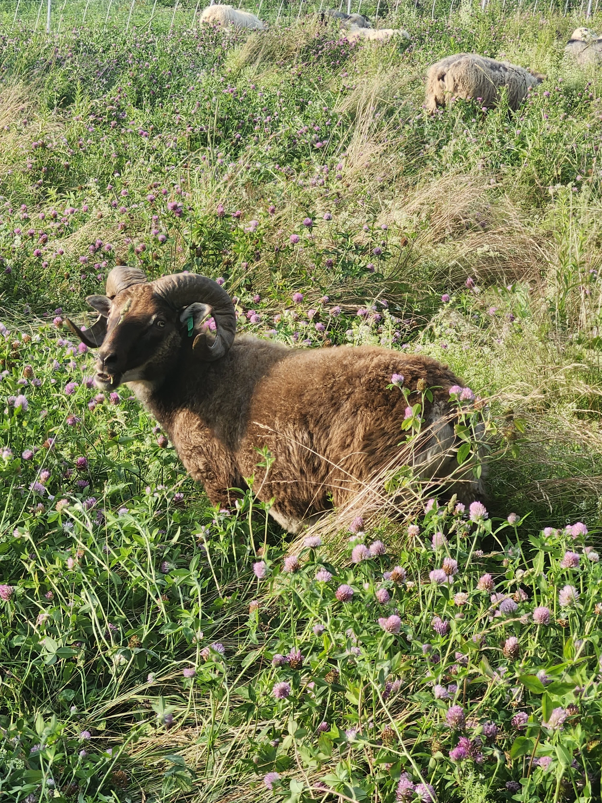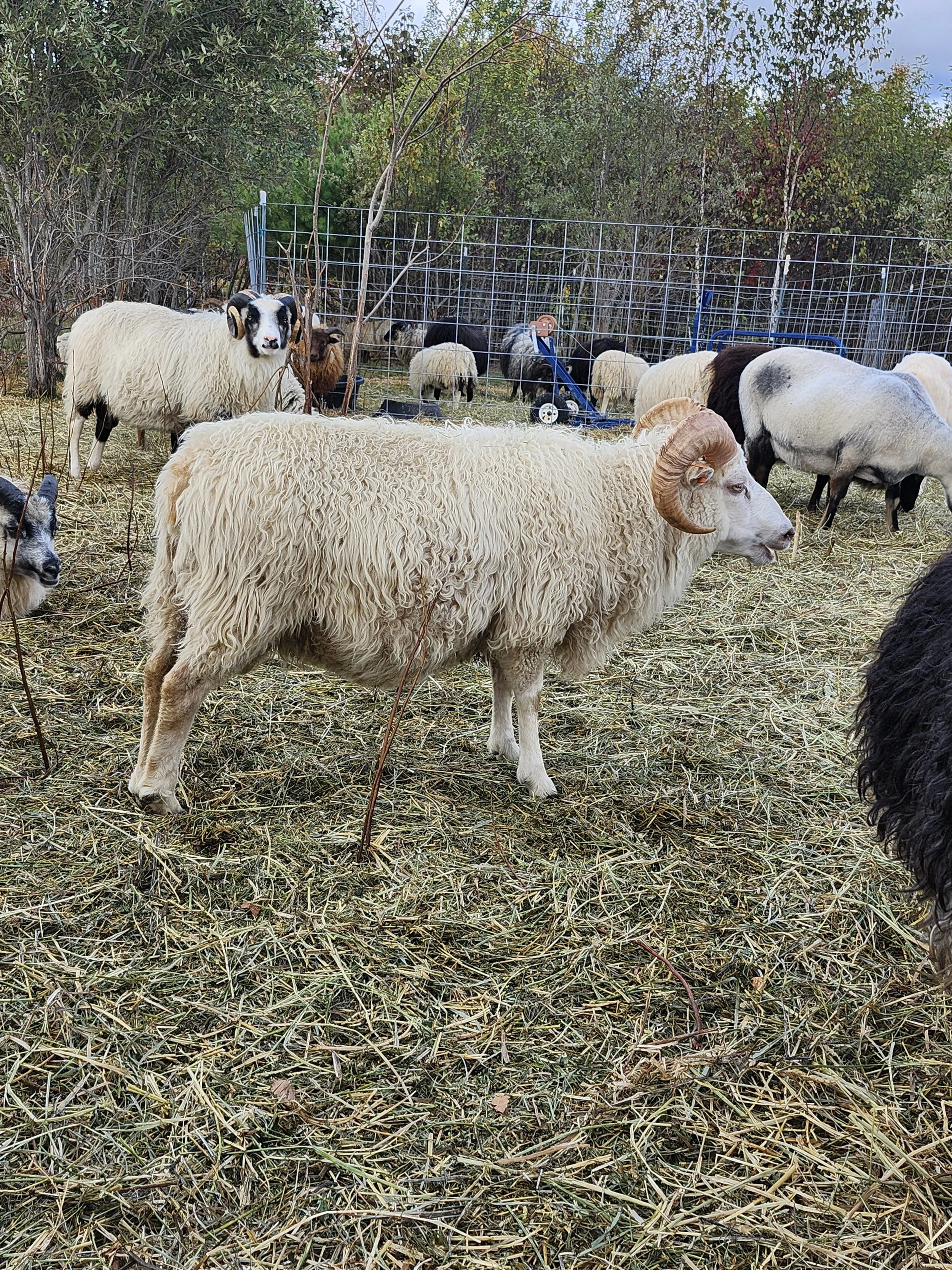 The reason we butchered him is we needed less rams, and he actually sifted to the bottom. As glorious as he seemed, most his lambs were just average. All except for the few paired with really nice ewes. These did very well. This year we gave him some very fine ladies hopefully. Another reason we decided to cull him was his tight horns that would need a lot of maintenance. So to remedy that he got all wide horned ewes. Hopefully his excellent parasite resistance, his lovely wool and chunky build will pass on, and not his horns.